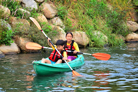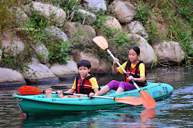 讓姐弟倆體驗輕艇的樂趣。