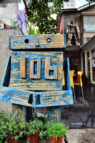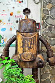 店內外擺設了好多鐵皮機器人,