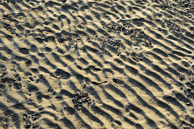 兒子眼尖,發現沙灘和水面有大自然創作的美麗圖騰,