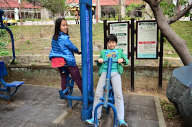 姐弟倆挑戰各式健身器材。