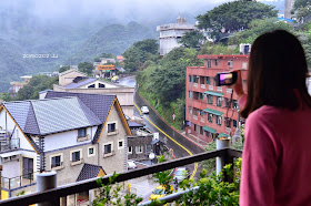 此刻的九份細雨霏霏,薄霧籠罩山頭,