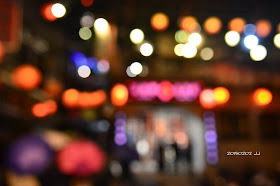 試拍看看離焦照片,讓盞盞燈火變成散景光點。
