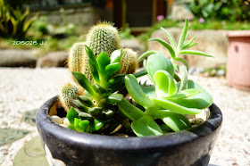 練習組合盆栽,把幾棵小多肉種在一塊,