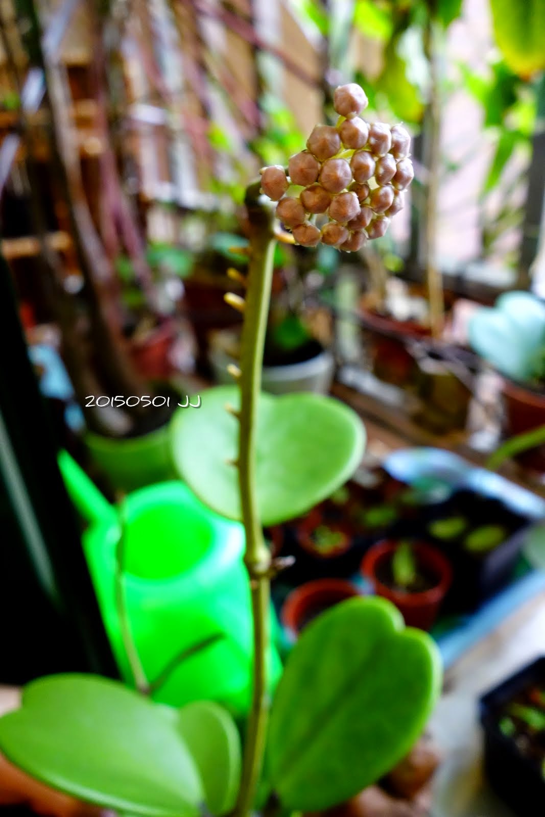 養了一陣子的心葉毬蘭,上週開始冒出花苞,