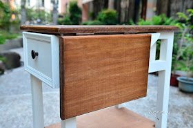 折疊桌板上掀後,再把白色的支撐板拉開,
