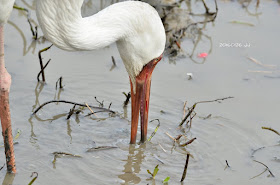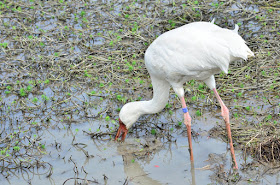 在溼地裡覓食,食物來源包括惱人的福壽螺,