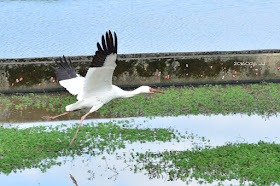 吃飽喝足,小白鶴準備準往其他水田,