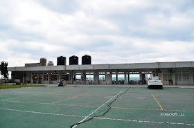 廣場邊有座小平台和短竿,