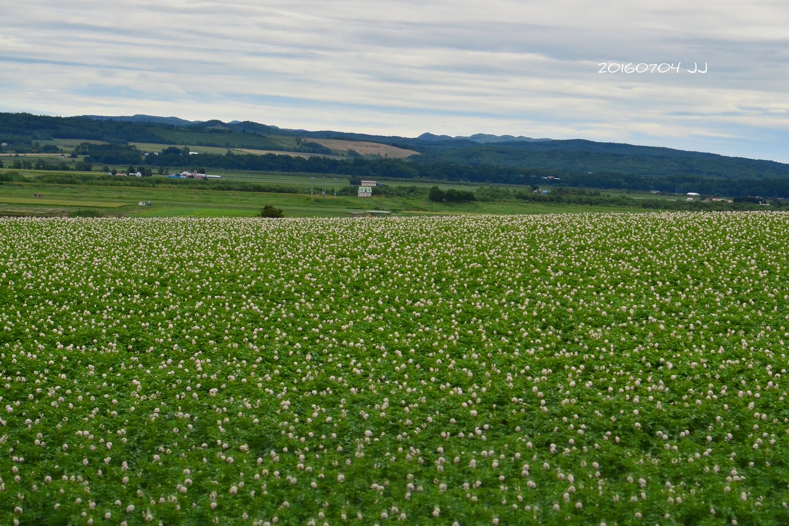 道路旁開滿小花的是馬鈴薯。