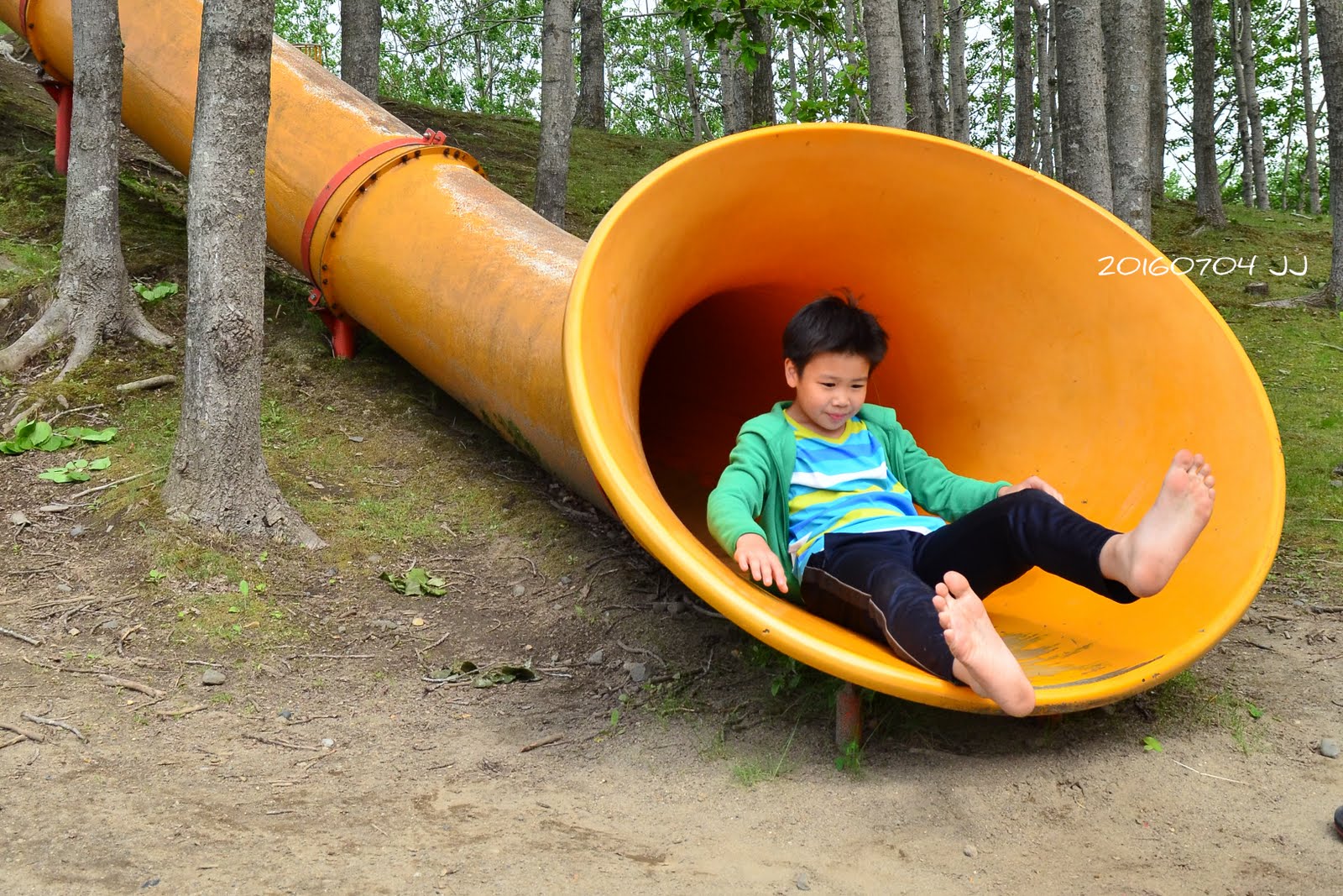 老爸也來嘗試一下這座像大喇叭溜滑梯。
