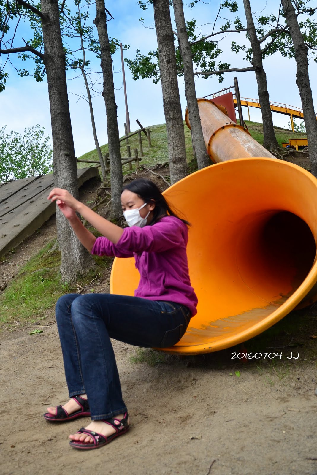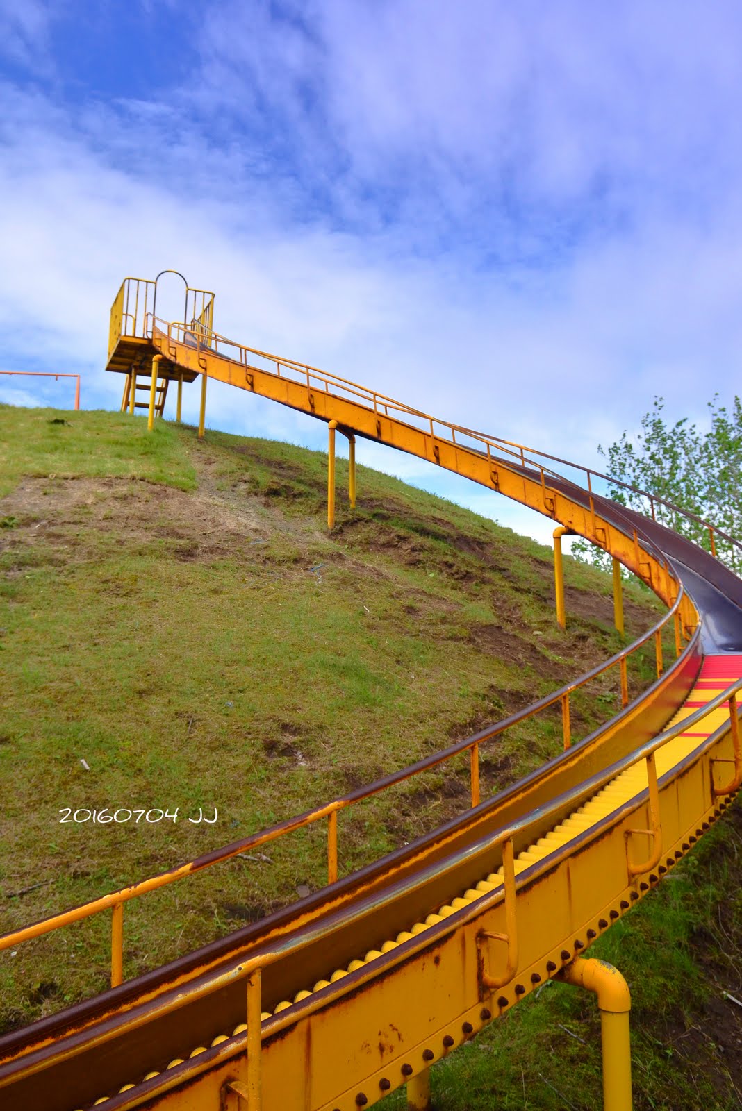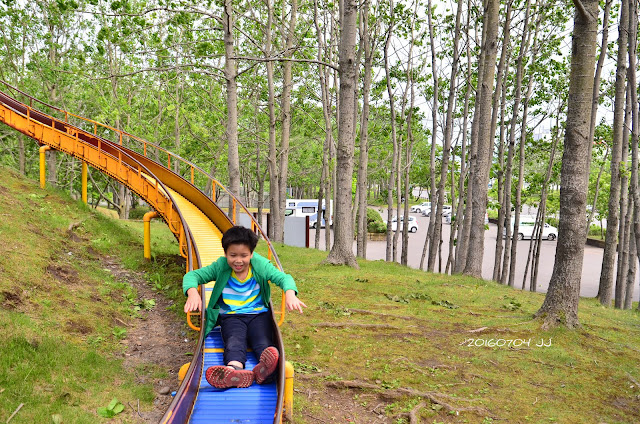 溜滑梯就在山丘上,看起來非常刺激,
