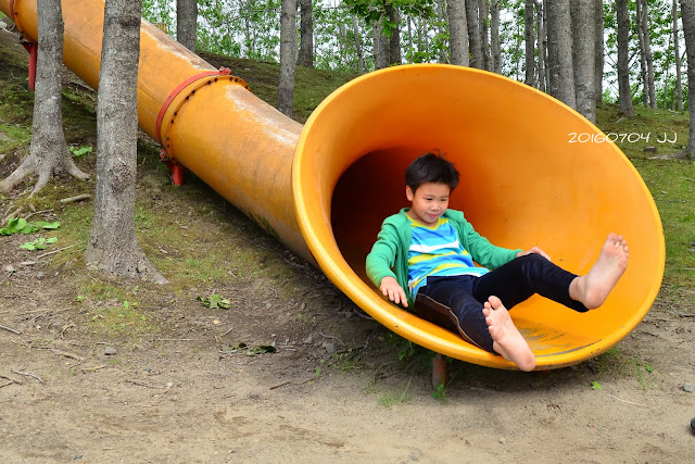 老爸也來嘗試一下這座像大喇叭溜滑梯。