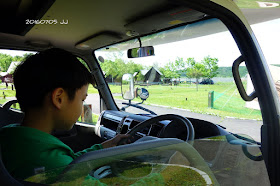 兒子坐在駕駛座,過過乾癮。