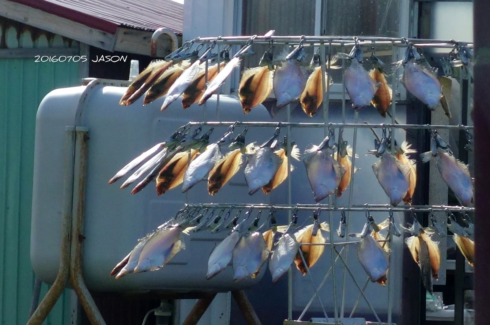 上頭掛滿了魚,應該是在曬魚乾。