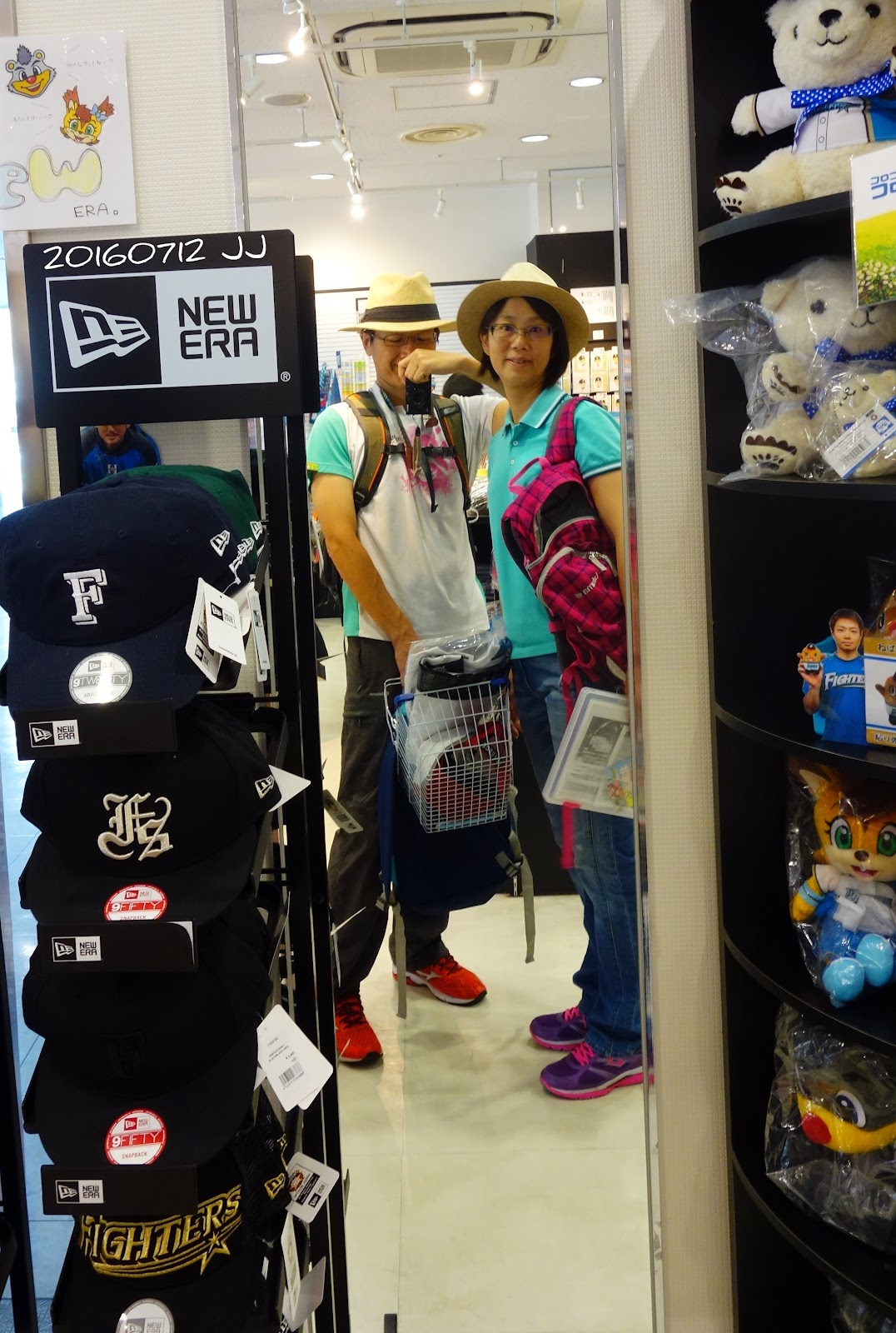 姐姐選了一頂帽子、兒子選了一件大谷的T恤,