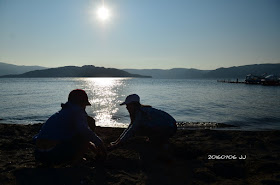 夕陽下只剩賣力挖溫泉的姐弟,