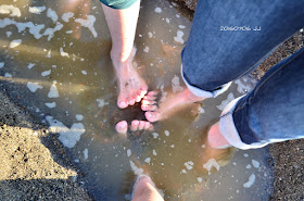 向下挖開砂土,真的汩汩滲出溫泉水耶!