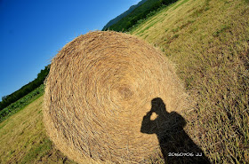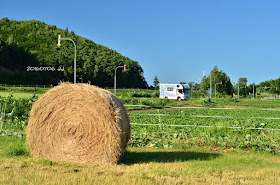 在路上看到剛收割的牧草球,
