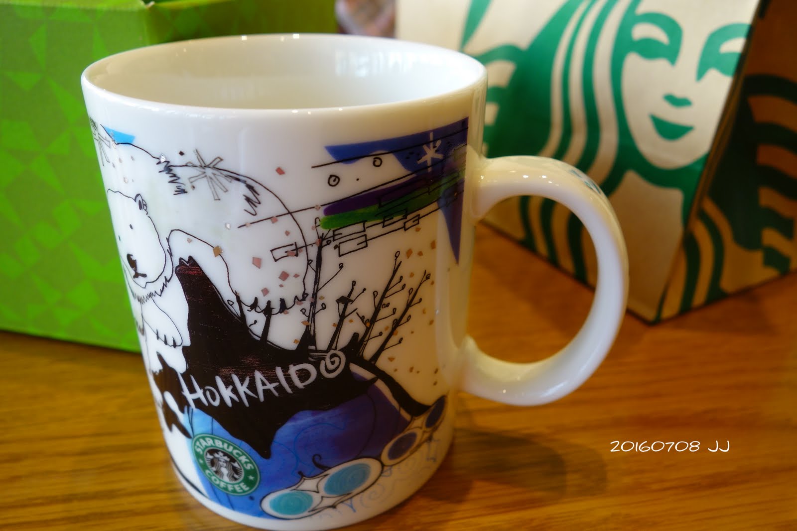 在星巴克店裡,看到架上精緻的城市杯,