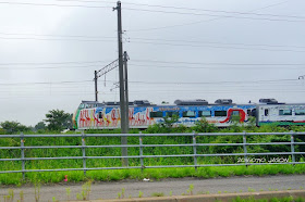 途中和一列美麗的彩繪列車交會。