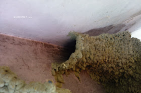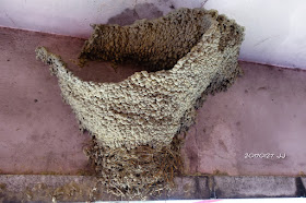 赫然發現屋簷下一座巨大的燕窩,