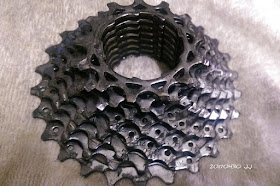拆下來的八速飛輪已經髒到不行,