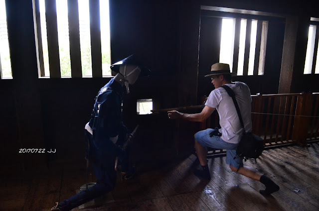 有模特兒模擬防守,旁邊也木槍可以體驗一下喔!