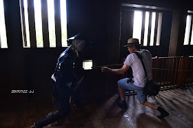 有模特兒模擬防守,旁邊也木槍可以體驗一下喔!