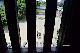 城牆上布滿了形狀不同的槍孔和箭孔,
