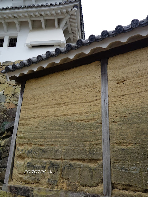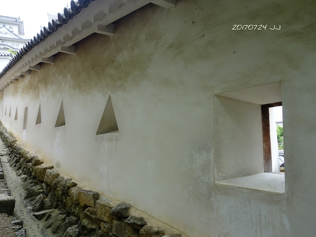 天守閣外牆佈滿了長方形的石落細縫開孔,