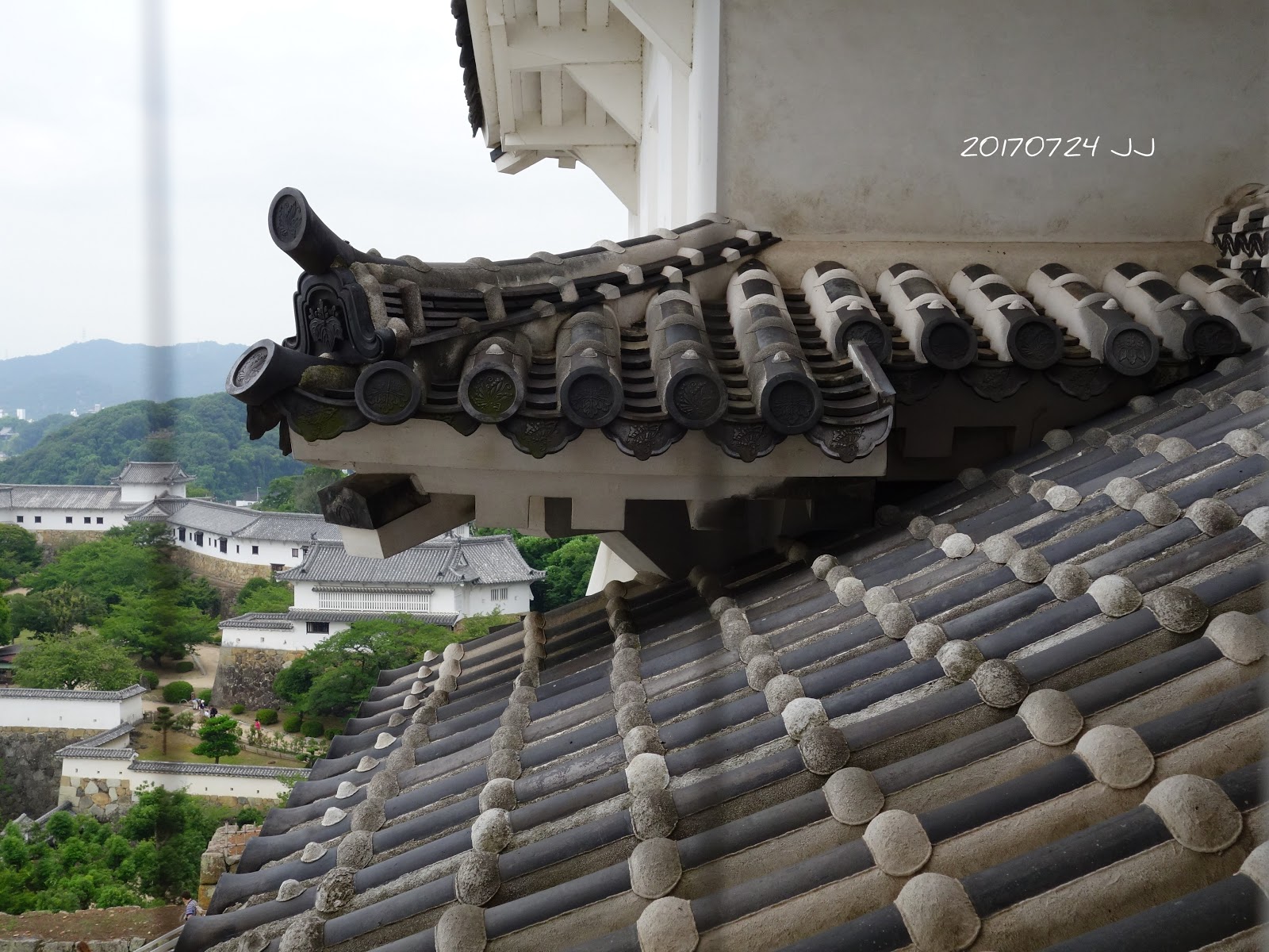 天守閣外牆佈滿了長方形的石落細縫開孔,