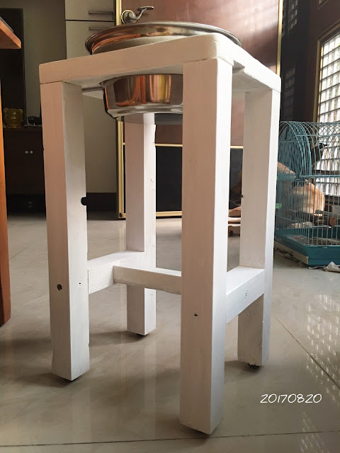為了方便他喝水,動手做了一組狗碗架給他囉!