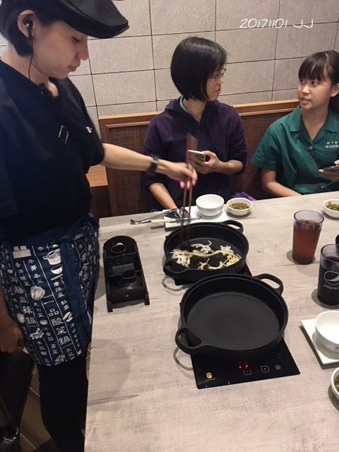 服務員會在桌邊協助將洋蔥、麻油等調味料拌炒,
