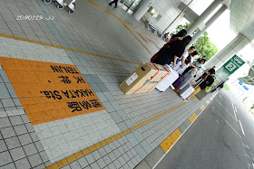 推著單車箱在巴士站內移動還算容易。