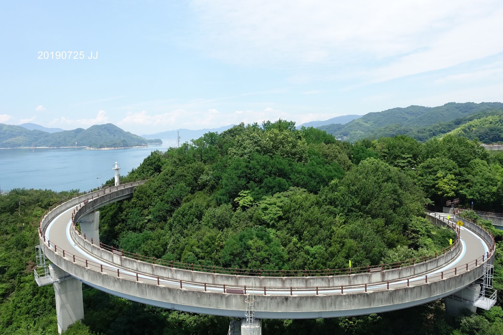 清晨時分,騎乘在瀨戶內海的自行車道,