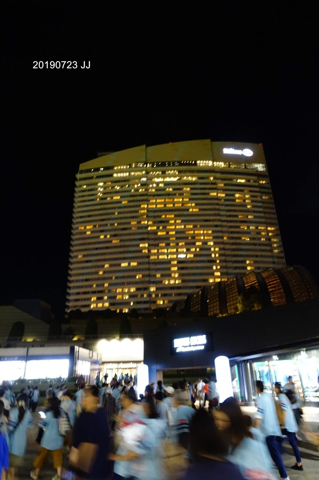 飯店外牆還會由房間燈光秀出軟銀的logo。
